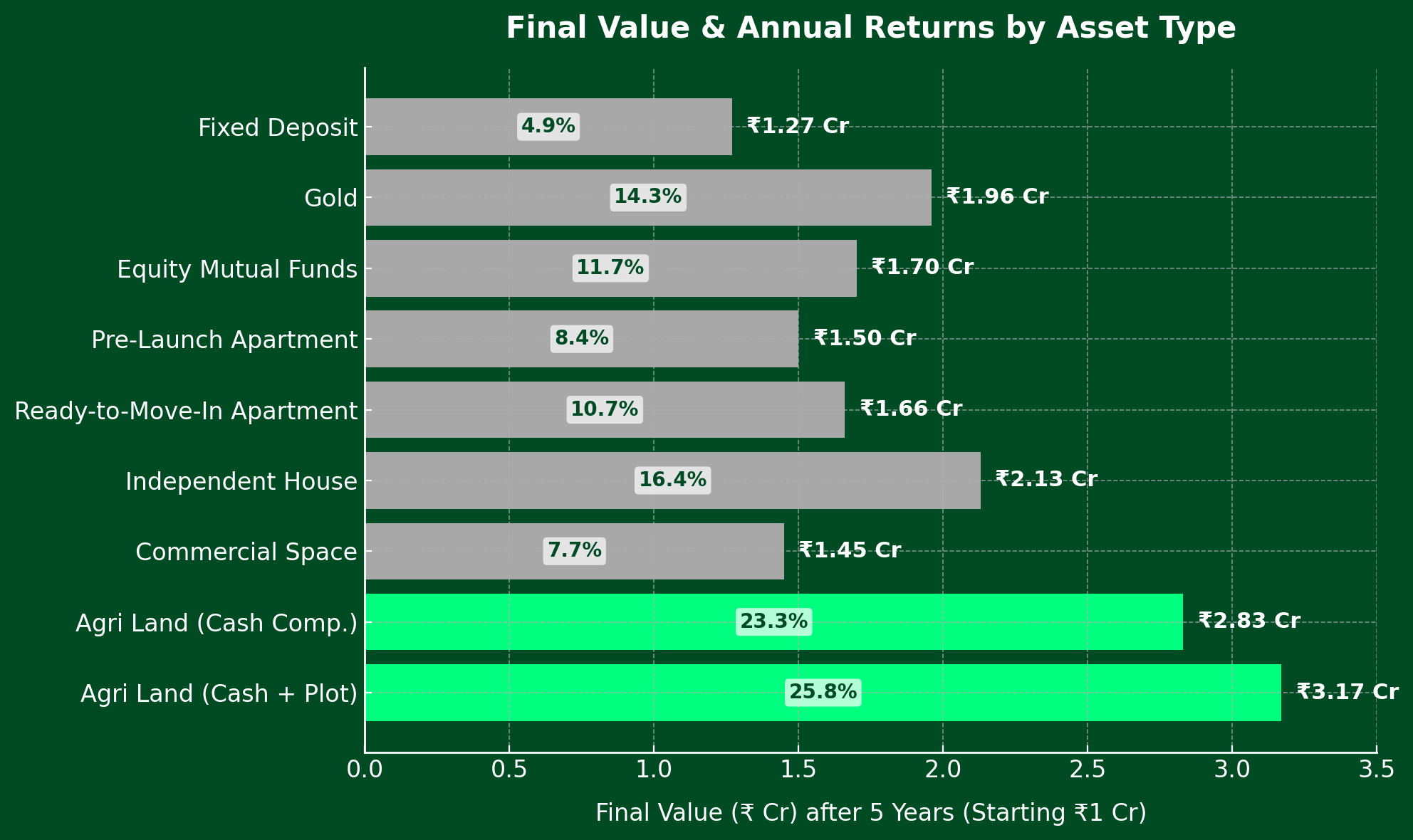 From fixed deposits and gold to real estate and farmland, see how ₹1 crore invested in 2020 performs by 2025 — with real NCR examples, tax breakdowns, and full return math.