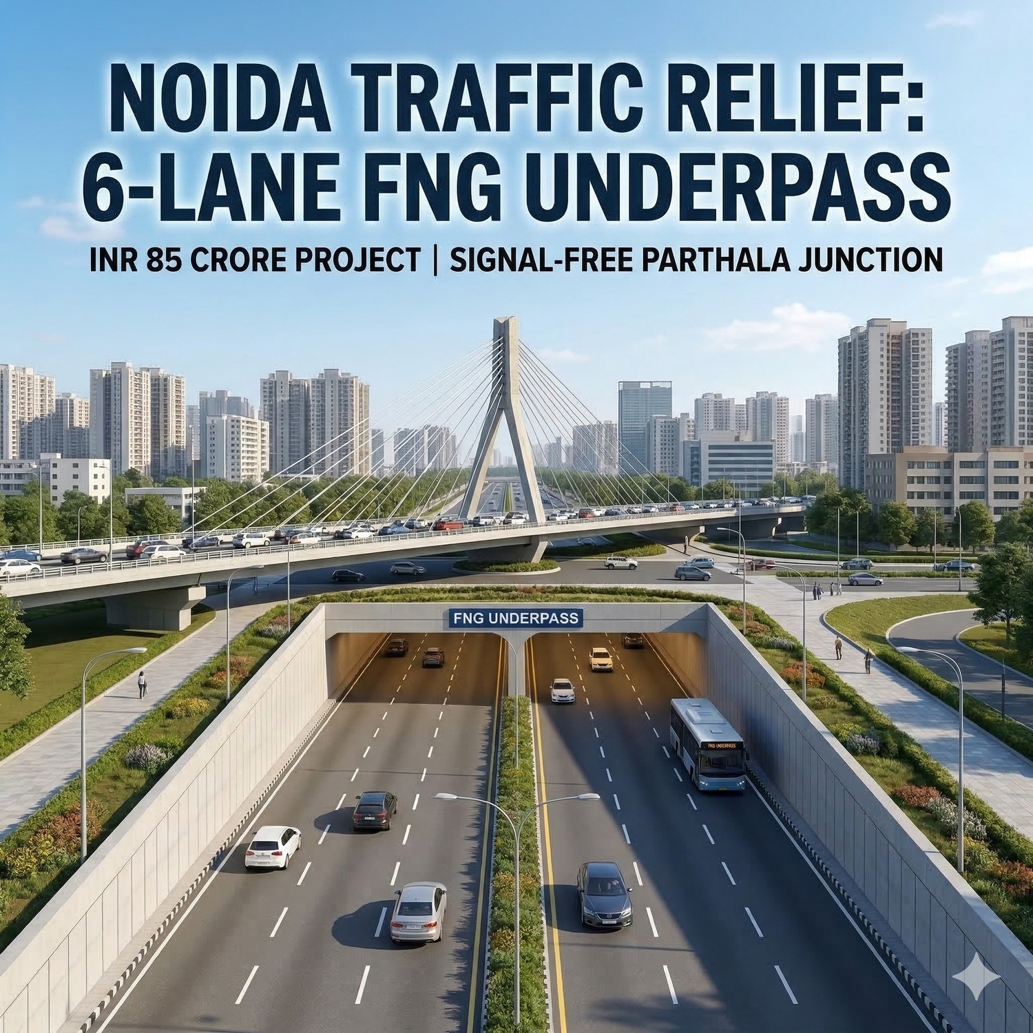 The Noida Authority has proposed a 710-meter, six-lane underpass at the Parthala junction on the FNG Expressway, an 85.5 crore project designed to eliminate peak-hour congestion, ensure signal-free movement, and significantly boost real estate valuations across Noida and Greater Noida.