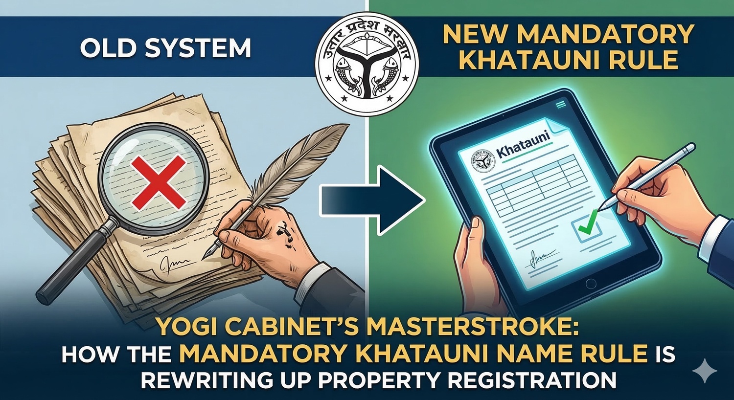 The Uttar Pradesh cabinet has mandated that a seller's name must be officially recorded in the Khatauni (land records) before any property registration can proceed, effectively striking a massive blow to the state's land mafia and securing buyer investments.