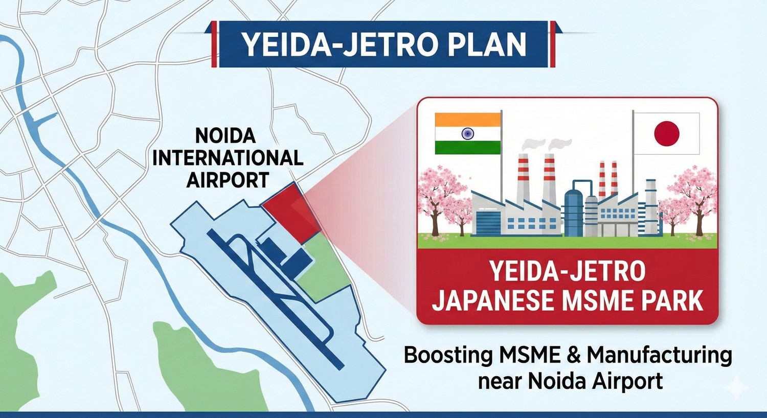 YEIDA and JETRO are collaborating to develop a dedicated "Japanese City" and MSME park in Sector 5A, aimed at housing over 1,400 Japanese firms near the upcoming Noida International Airport.