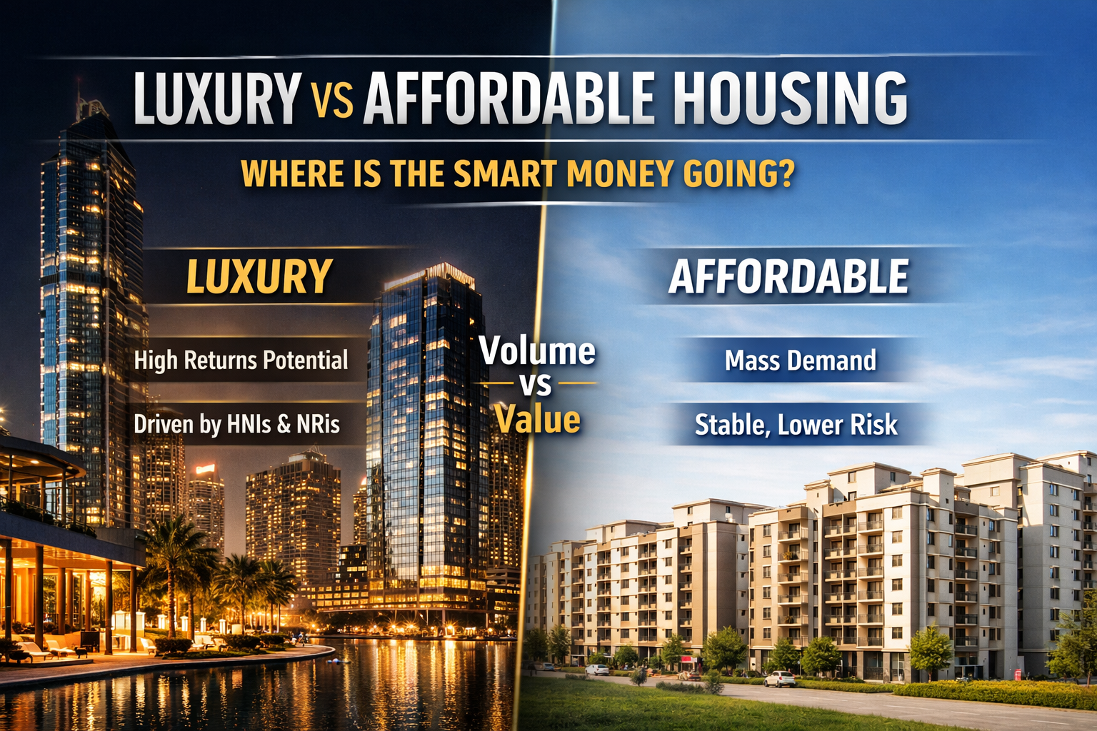 The Indian real estate market is witnessing a major paradigm shift in 2026, with smart money heavily favoring luxury properties for high capital appreciation and premium lifestyle features, while affordable housing remains a steady foundation for entry-level buyers and Tier-2 cities. Investors are increasingly balancing their portfolios between high-growth premium assets and stable affordable projects to maximize wealth creation and manage risk.
